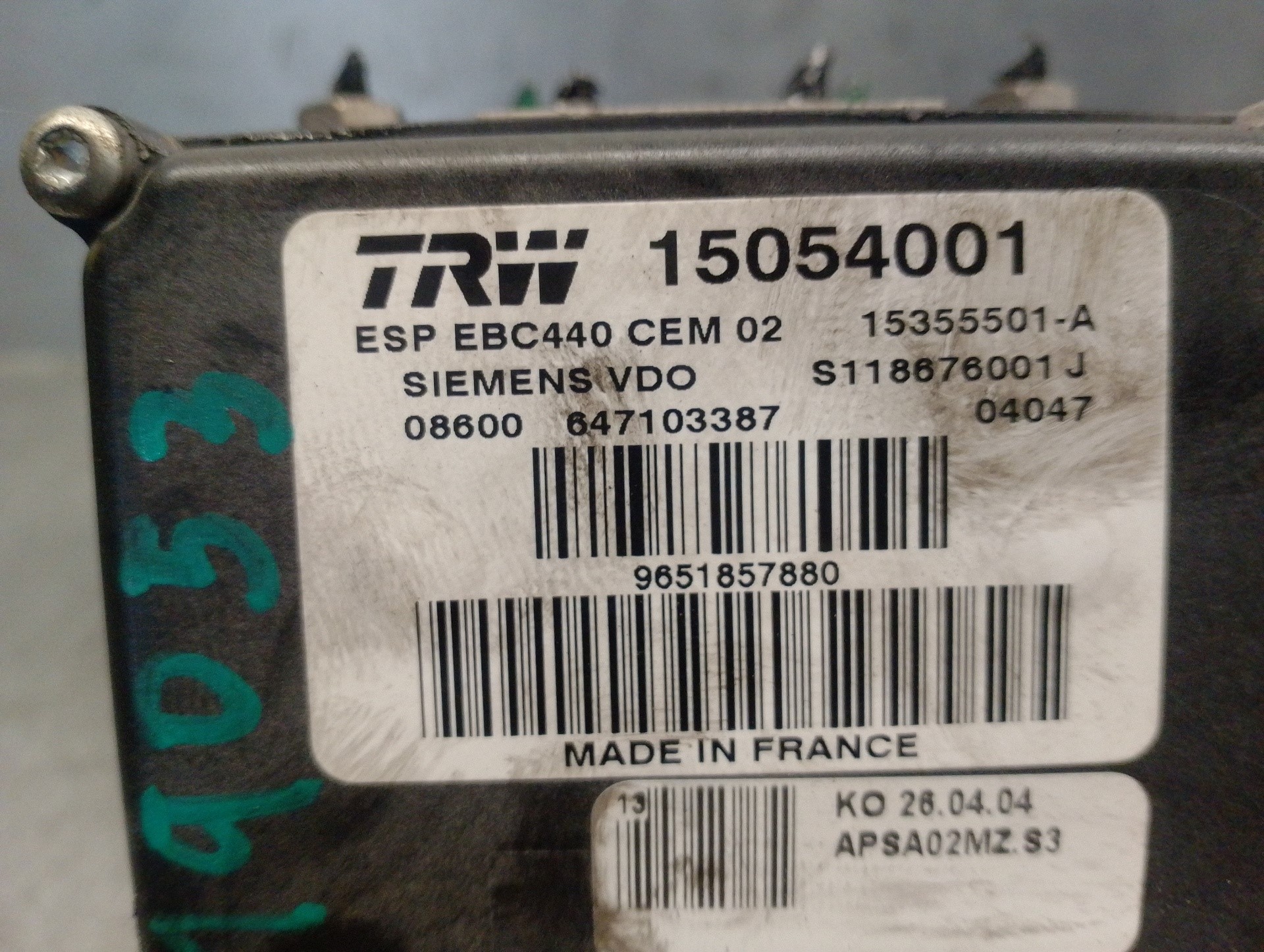 ABS PEUGEOT 407 9651857880 | 15054001 | TRW TELEPECAS Referenz: 12481679 23 Out 2023 |