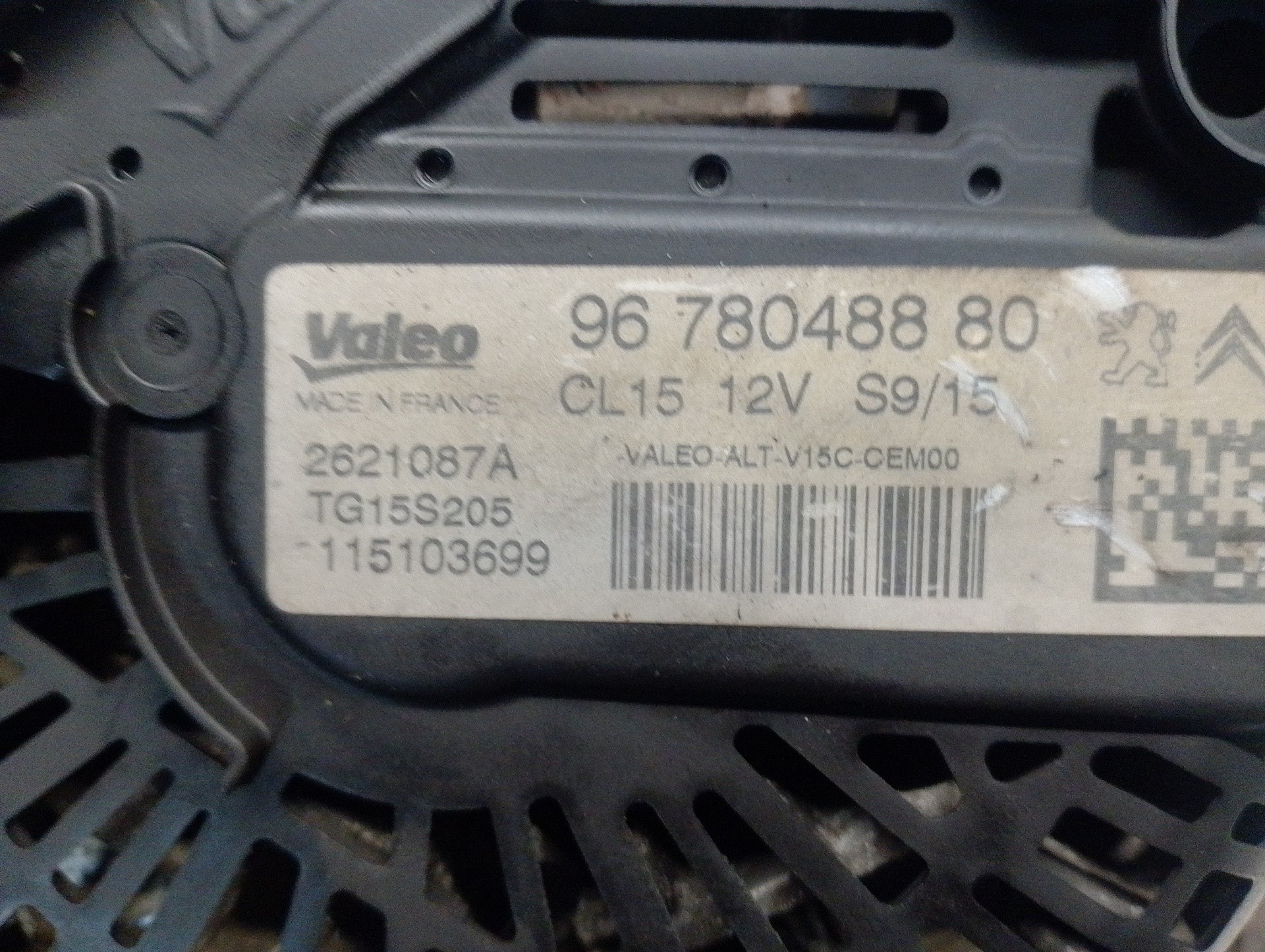 ALTERNADOR CITROËN C3 9678048880 | 2621087A | VALEO TELEPECAS Referenz: 12122391 ID Stock: 4848041 02 Nov 2023 |