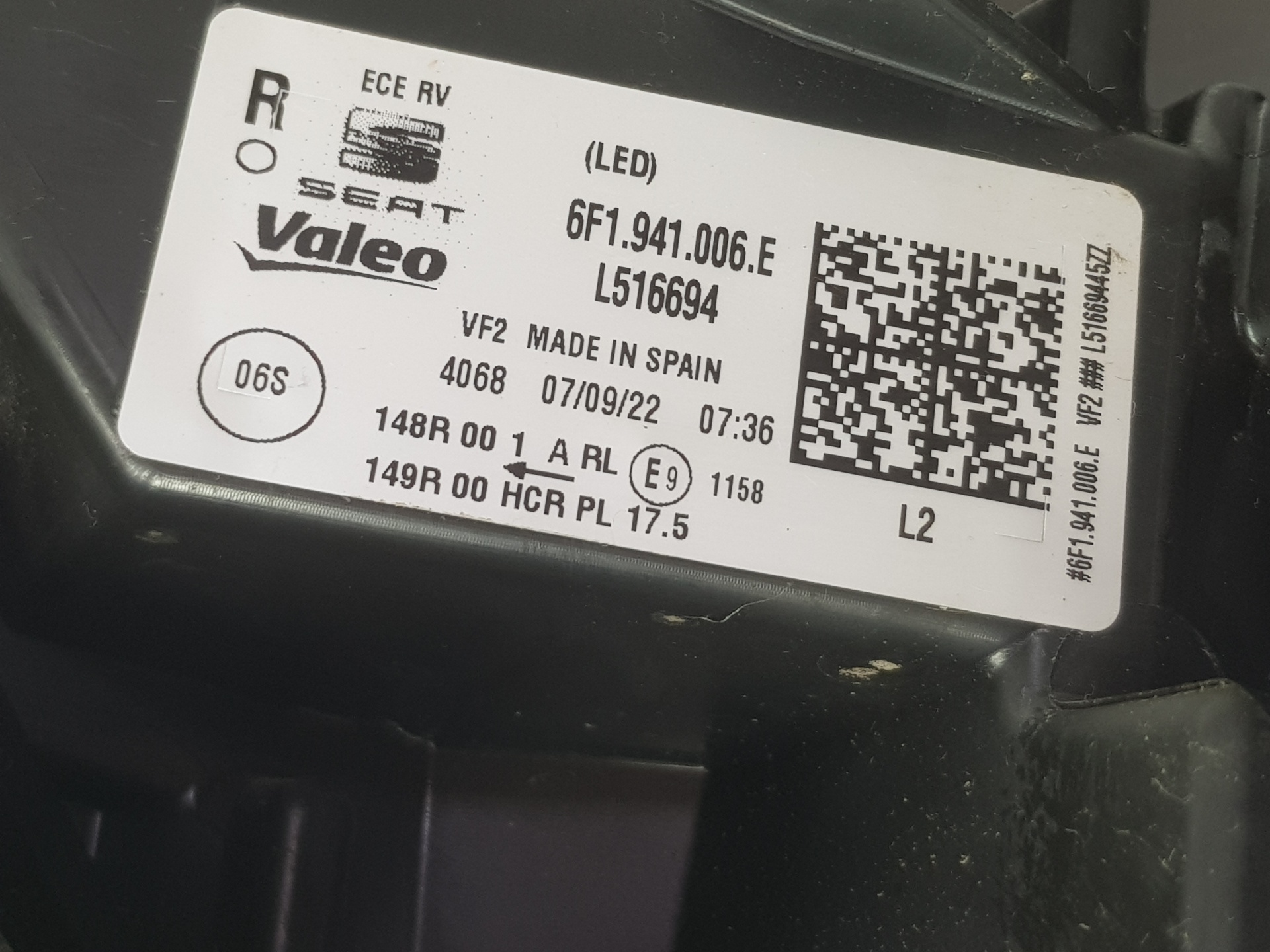 FARO DERECHO SEAT IBIZA 6F1941006E | 6F1941006F TELEPECAS Referenz: 14043268 ID Stock: 1916528 10 Nov 2025 |