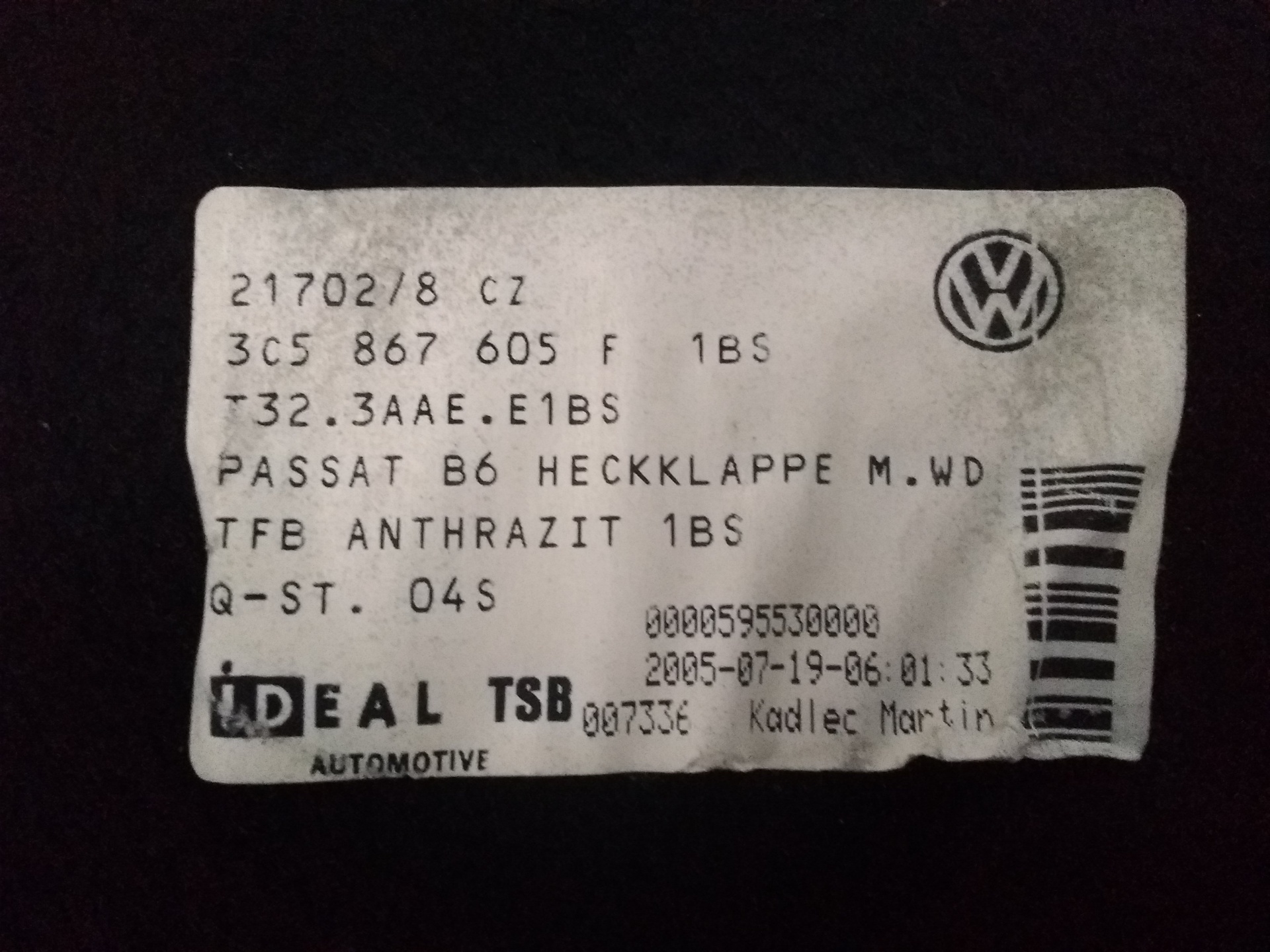 GUARNECIDO PORTON TRASERO VOLKSWAGEN PASSAT BERLINA 3C5867605F TELEPECAS Referenz: 9992776 26 Fev 2023 |