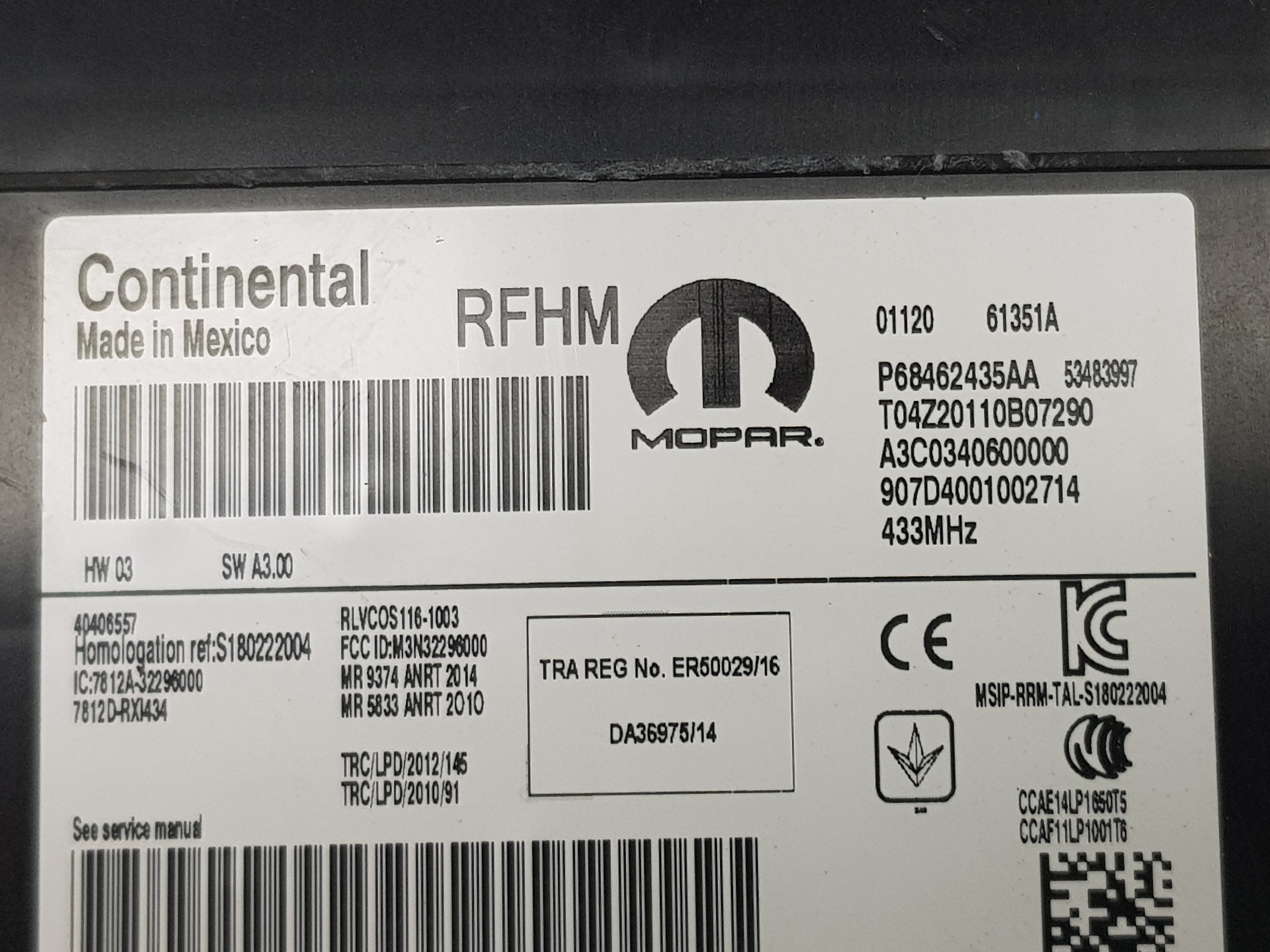 | Anmerkungen | 68462435AA T04Z20110B07290 A3C0340600000 907D4001002714 |
