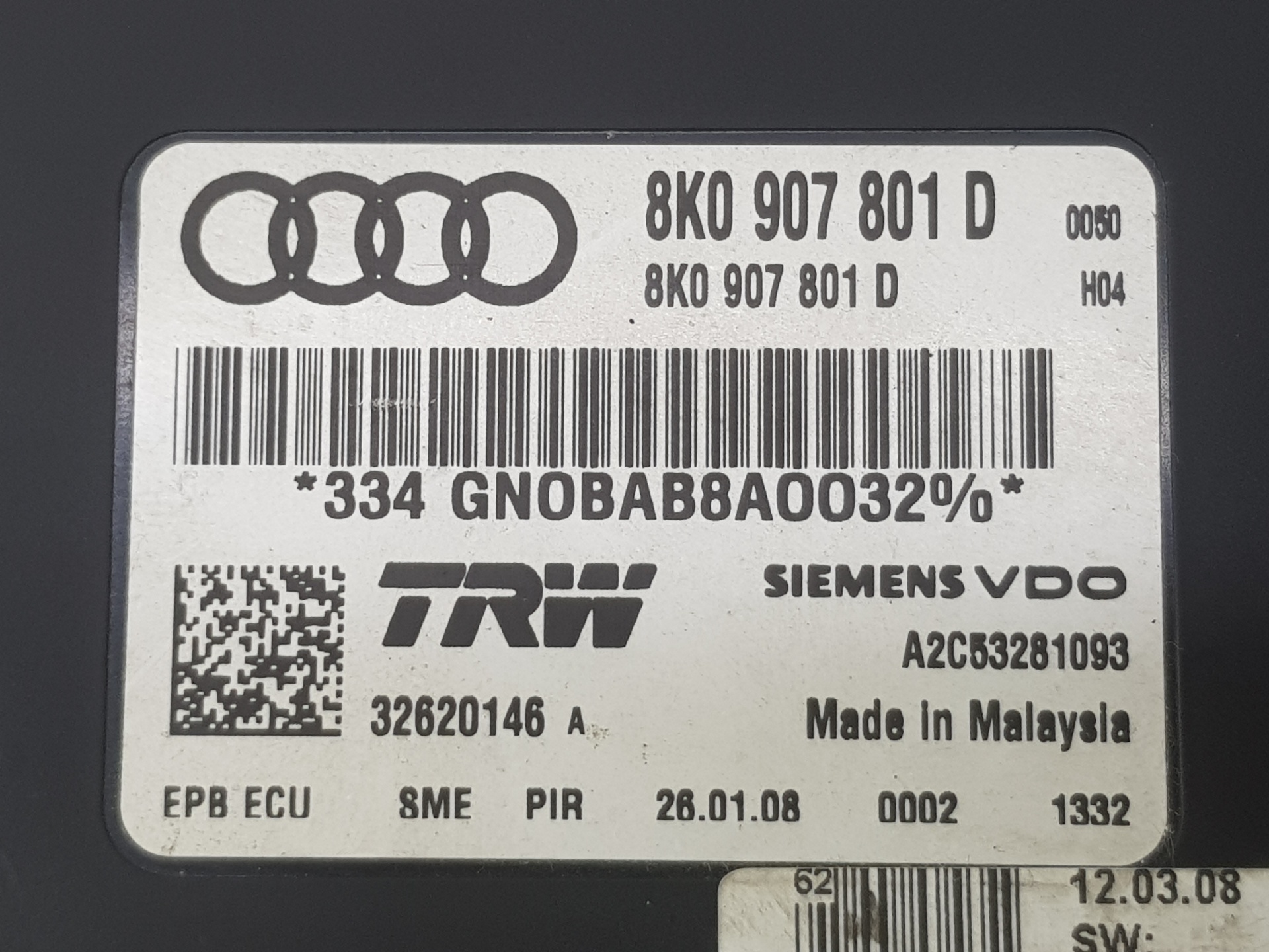 | Anmerkungen | unidad de control para freno electromecanico estacionamient 8K0907801D A2C53281093 |