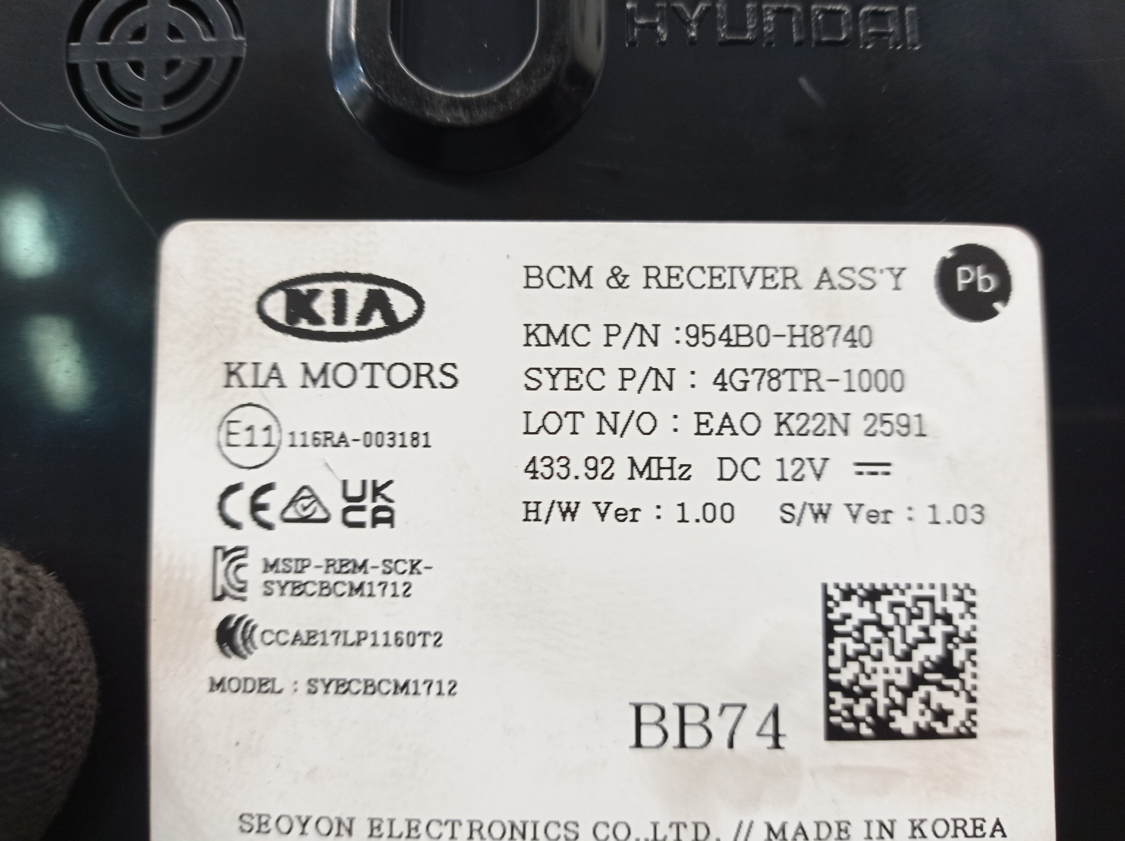 MODULO ELECTRONICO KIA STONIC (YBCUV) 954B0H8740 TELEPECAS Referenz: 11975709 ID Stock: 4862105 10 Nov 2023 |