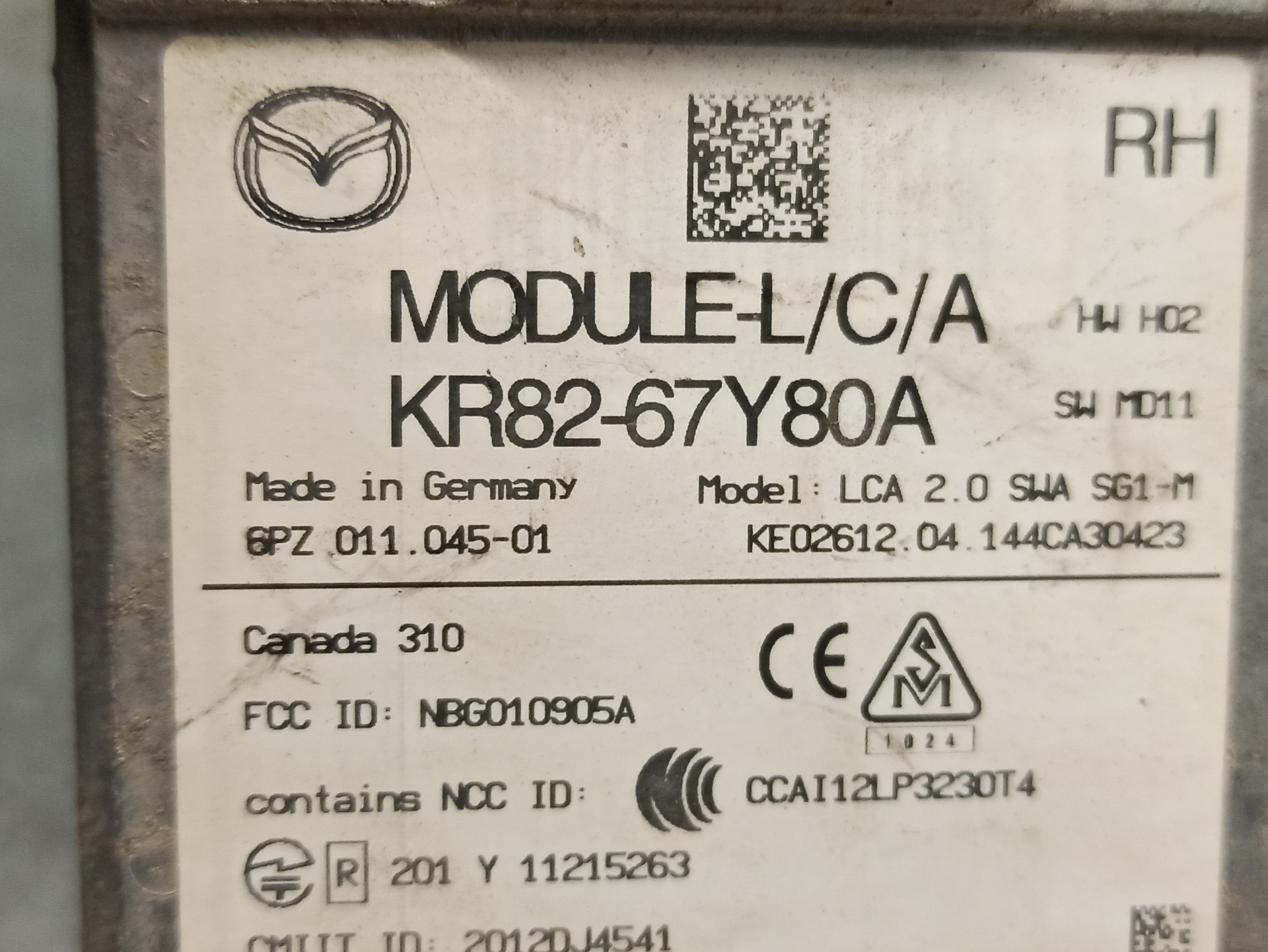 MODULO ELECTRONICO MAZDA CX-5 KR8267Y80A TELEPECAS Referenz: 12440393 16 Mar 2024 |