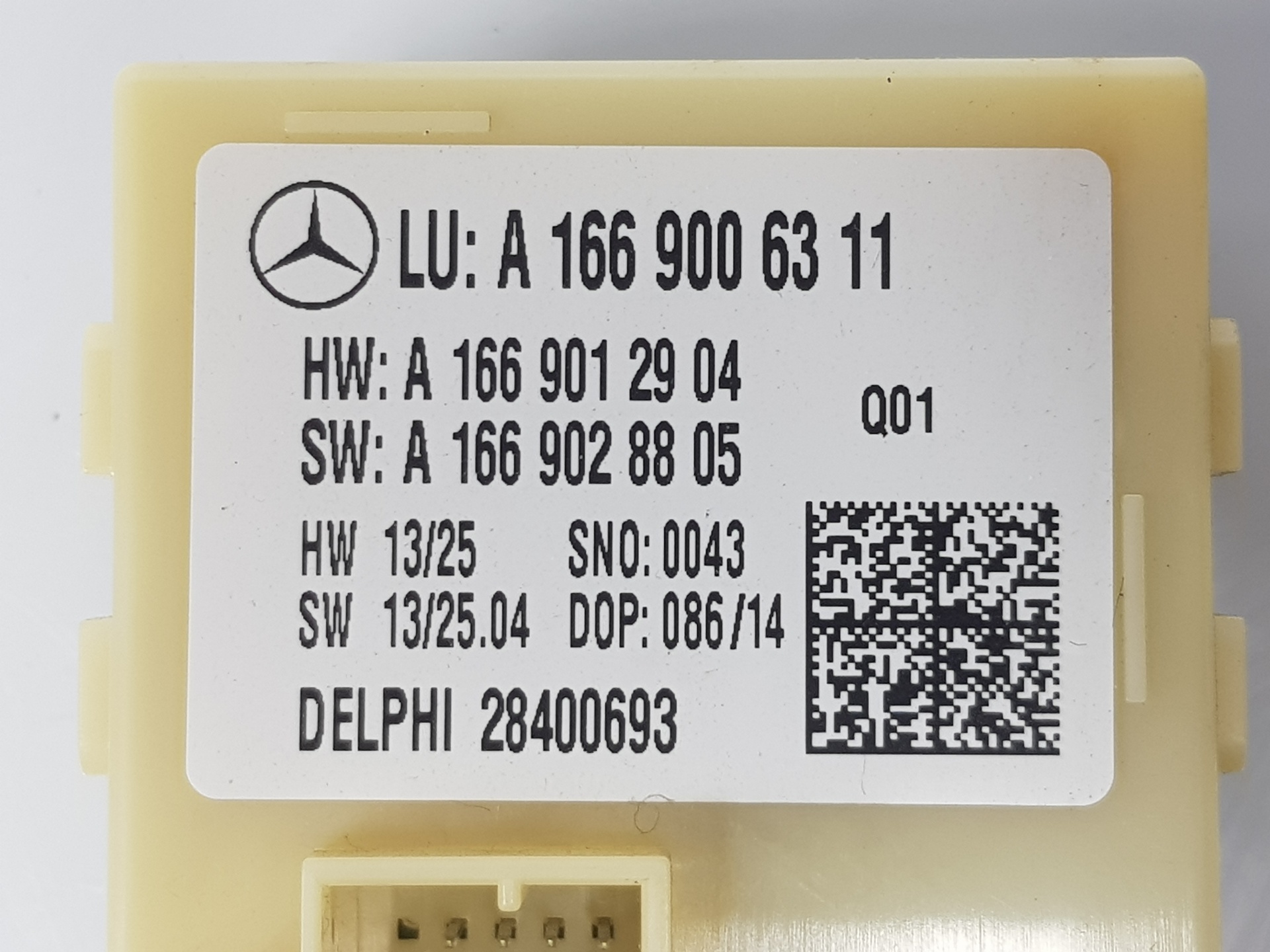 | Anmerkungen | UNIDAD DE CONTROL CIERRE AUTOMATICO PUERTA DE PARED POSTERIOR A1669006311 A1669012904 A1669028805 28400693 |