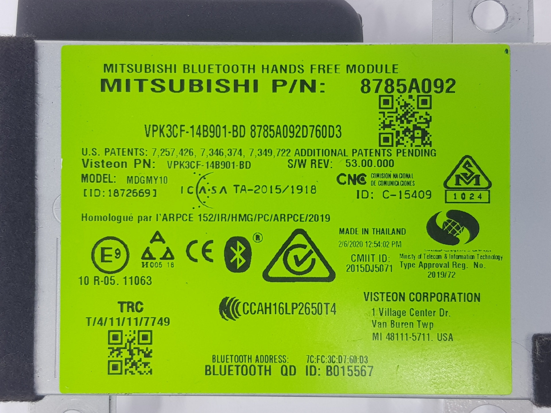 | Anmerkungen | MODULO TELÉFONO 8785A092 VPK3CF-14B901-BD |