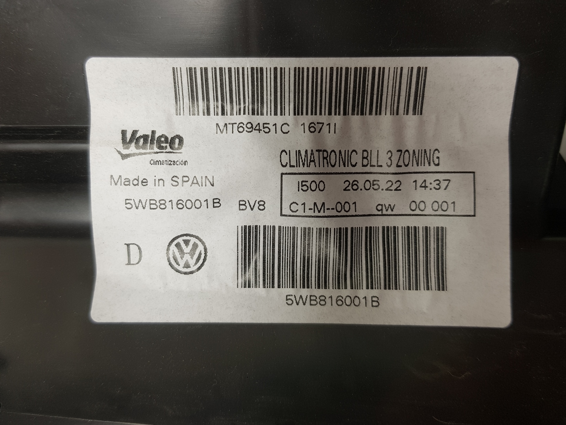 | Anmerkungen | MODULO DE CALEFACCION 5WB816001B VALEO MT69451C referencias oem iam 5qb820353a 5q1820007d 1845069 |