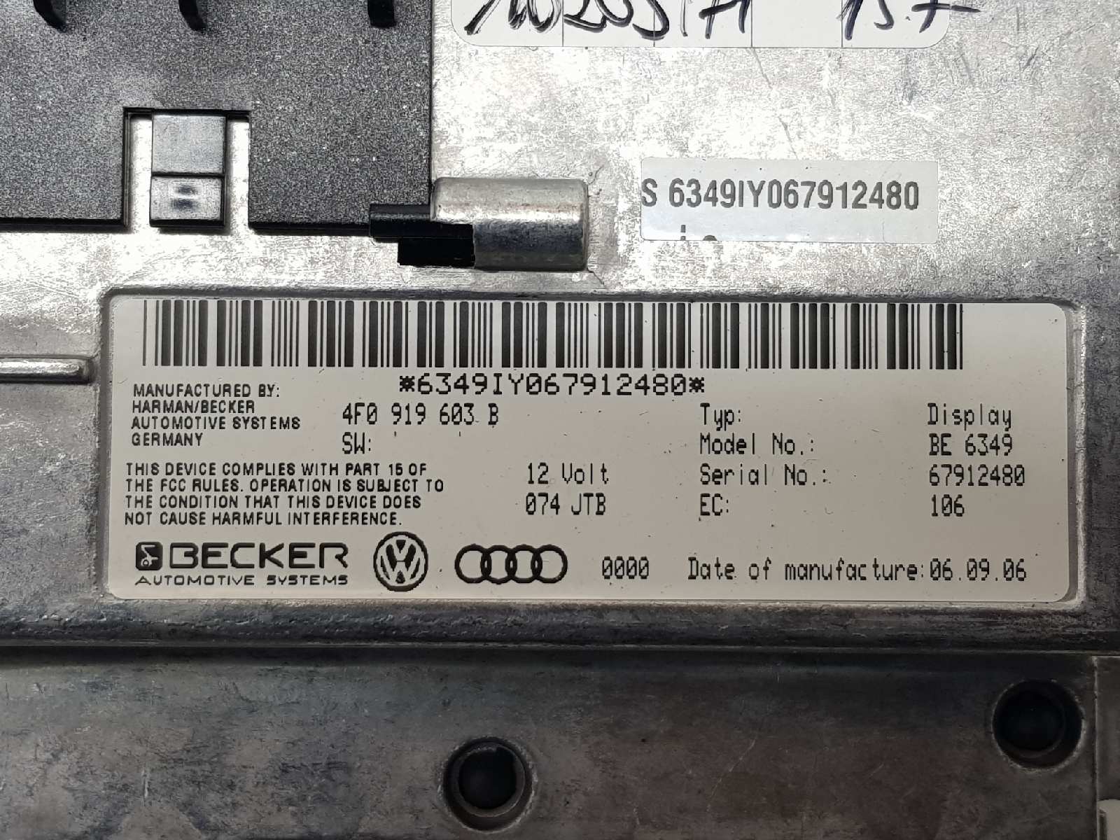| Anmerkungen | 4F0919603B 67912480 BE6349 |